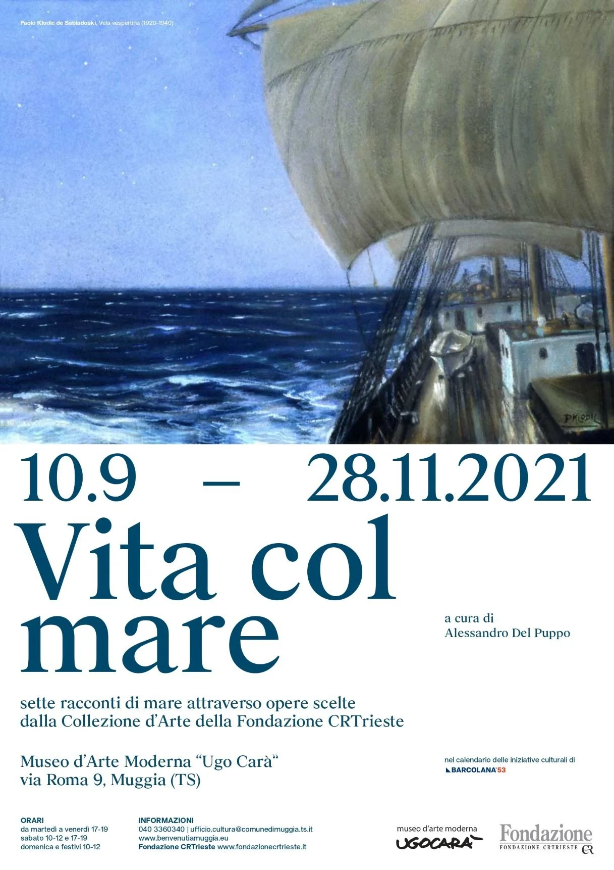 La mostra presenta principalmente le sue famose vedute metafisiche del Carso e dell’Istria, con suggestivi focus su Trieste, Muggia, Pirano e Venezia. In esposizione una quarantina di vedute dal taglio metafisico che coprono un arco temporale di oltre 40 anni, dalla metà degli anni Sessanta fino alla metà degli anni Duemila, ma anche una ricca sezione dedicata a materiale d’archivio che ricostruisce le mostre e i relativi intriganti filoni di ricerca tematici: la storia, le chiese e le leggende di Trieste, le casupole dei paesini carsici, le marine e le barche dell’Istria, le isole e i deserti immaginari, ma anche la Barcolana, il Carnevale, lo sport e infine le caricature triestine.